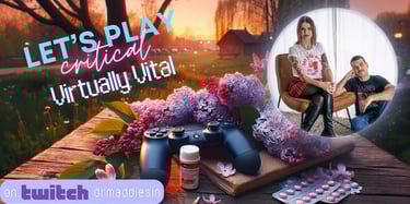 Im Juli 2024 begann ich mit Streaming auf Twitch. In Zusammenarbeit mit Thomas Spies, Medienwissenschaftler und Gründer des Formats Let's Play Critical, starteten wir eine episodenbasierte Twitch-Serie, die Gaming mit kritischer Analyse verbindet. In Virtually Vital spielen wir Spiele und beleuchten Themen rund um Gesundheit, Pflege und Krankheit. Über Twitch kann das Publikum direkt in die Gespräche und Aktionen einbezogen werden. Über die Icons unten können Sie mehr über vergangene und kommenden Episoden zu erfahren.